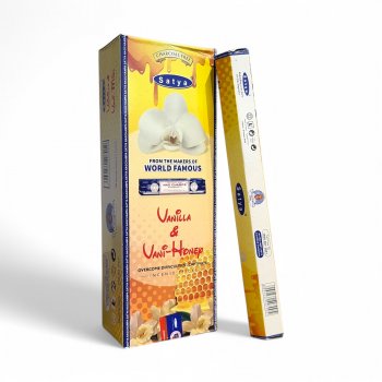 BOX C/6 INCENSO HEXAGONAL SATYA - BAUNILHA E MEL