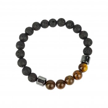 PULSEIRA PEDRA ROLADA - OLHO DE TIGRE VULCANICA